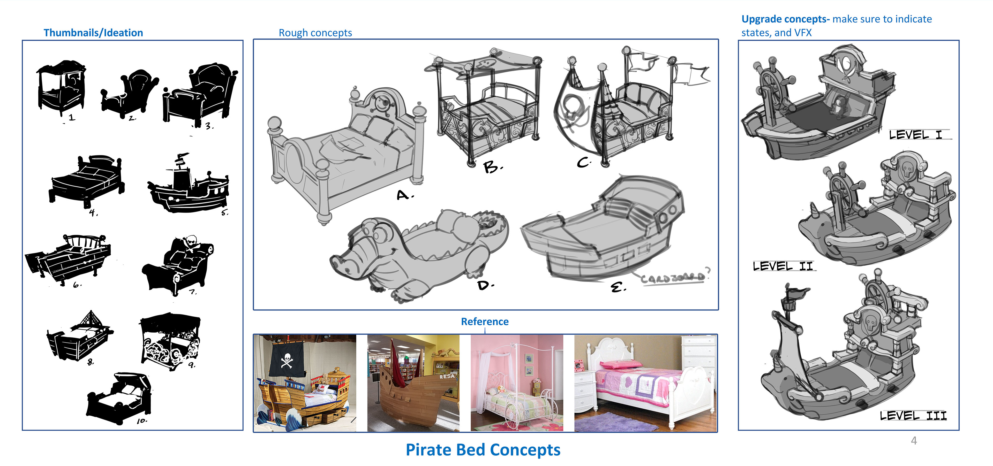 Concept Art of a young female pirate character and her flying bed as she's off to join the Lost Boys in Never Never Land.